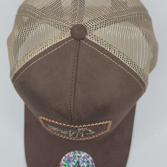 Gorra Trucker AMBULA - Edición "COWBOY LIKE ME" (Gamuza Marrón y Beige)