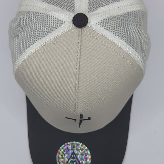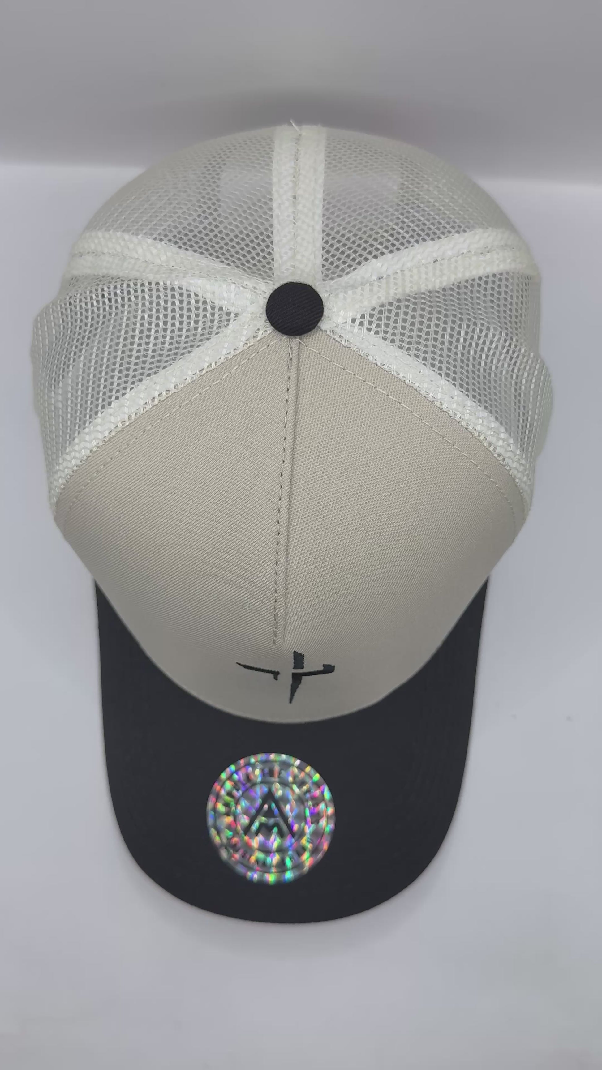 Gorra Trucker AMBULA - Edición "CRUZ MINIMAL" (Beige & Negro)
