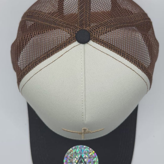 Gorra Trucker AMBULA - Edición "Fe Tricolor" (Blanco Crema, Negro y Café)