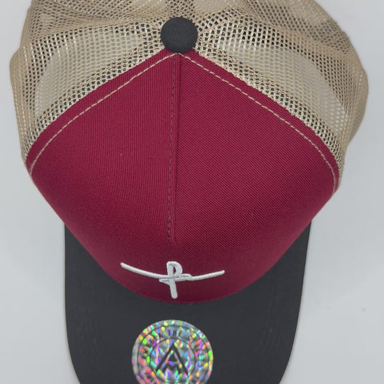 Gorra Trucker AMBULA - Edición "Fe Tricolor" (Burdeos, Negro y Beige)