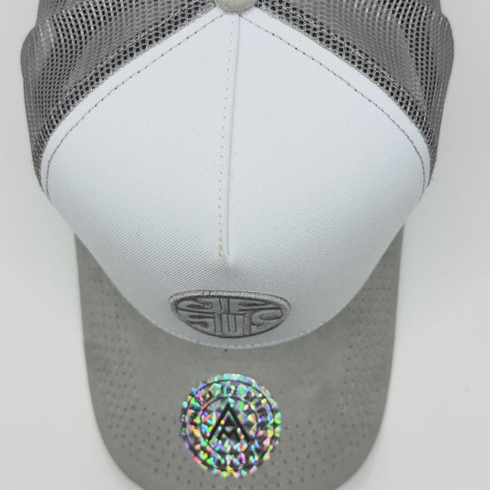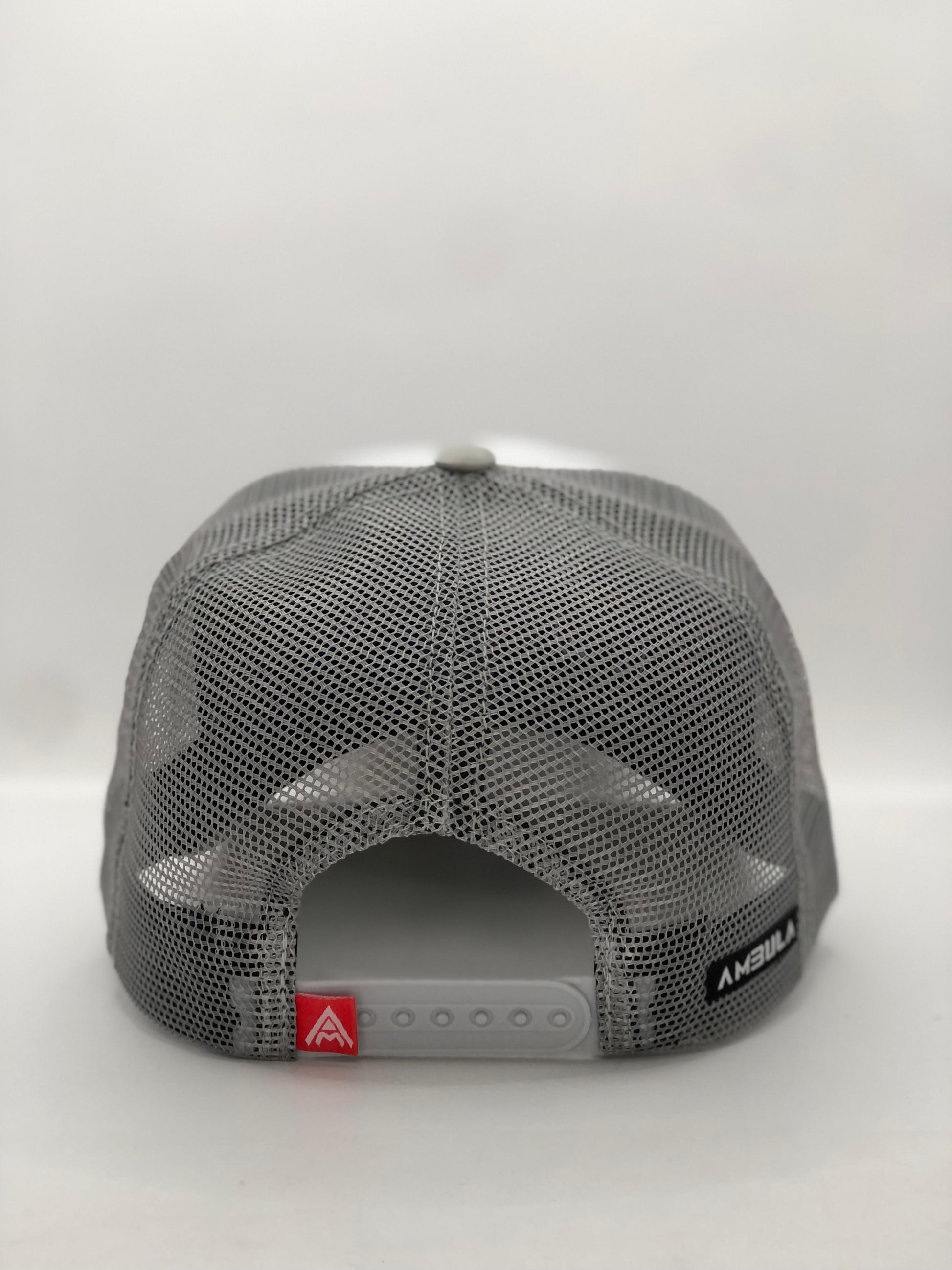 Gorra Trucker AMBULA - Edición "JESUS Suede" (Blanco & Gris)
