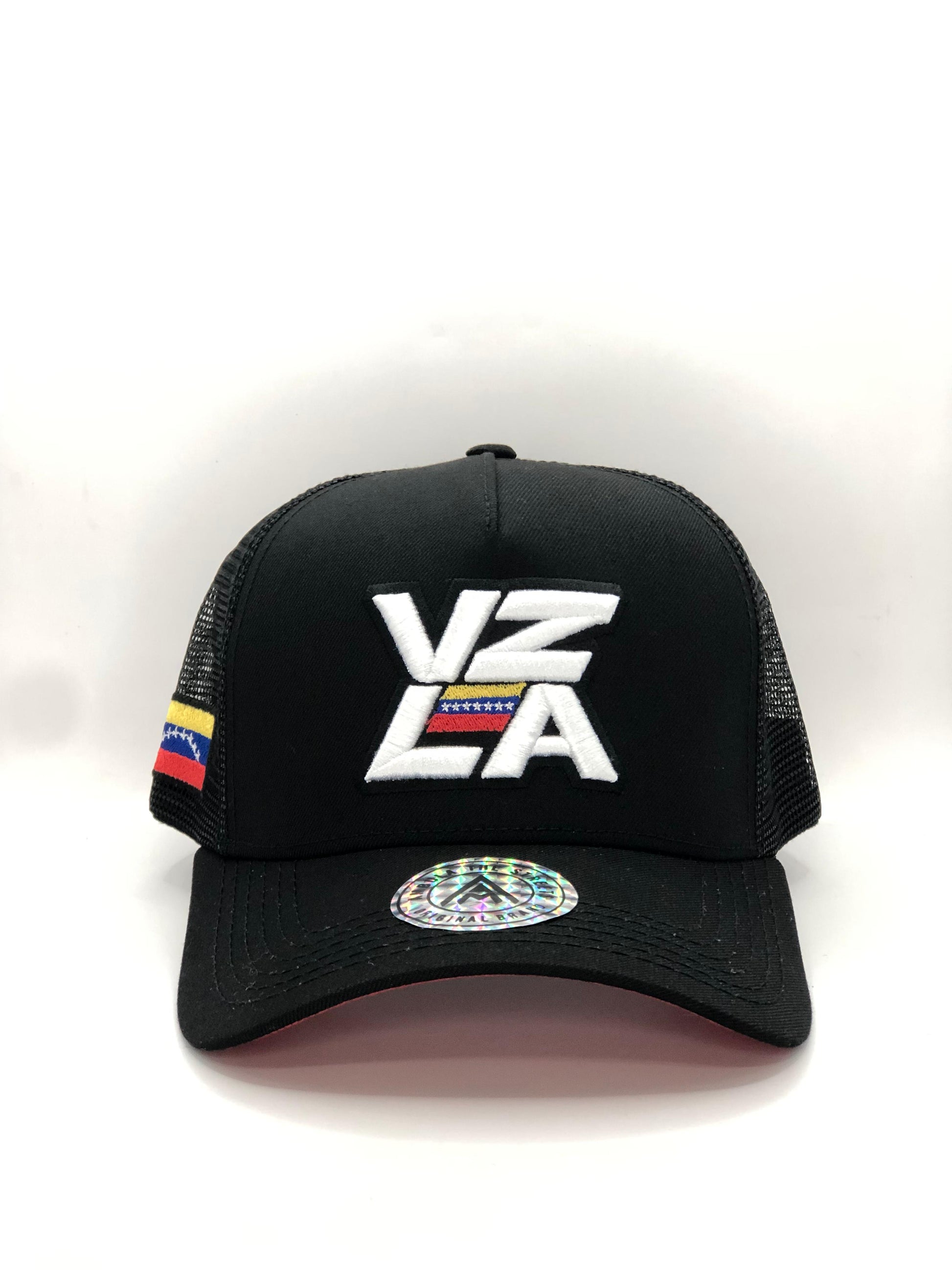 Declaración de Identidad: El frontal lleva un bordado grande y en relieve (3D) de las letras "VZLA" en color Blanco Puro, creando un contraste máximo y una visibilidad inmediata.