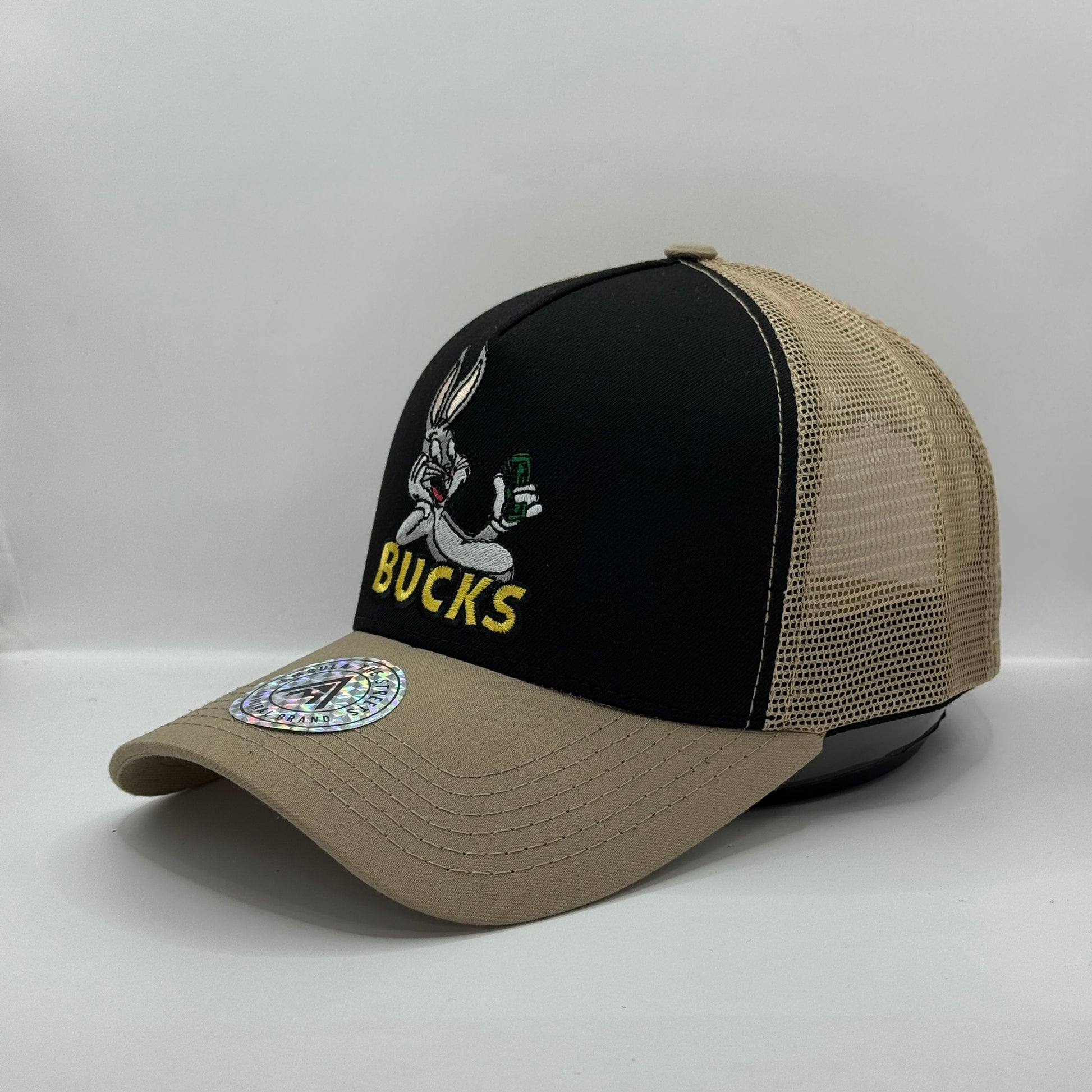 Gorra Trucker AMBULA - Edición "BUCKS BUNNY" (Negro, Beige & Amarillo)